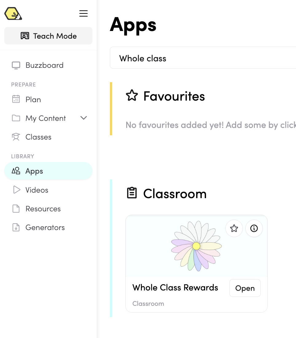 - You can add Whole Class Rewards to your favourite apps via the Teach Mode or through the App library. Click on this icon if you're adding it through the App library.