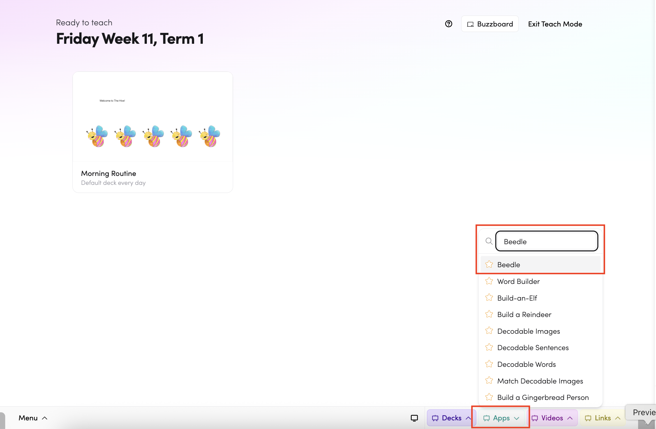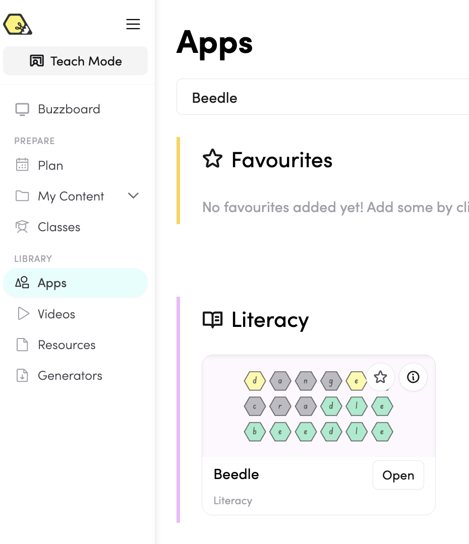 - You can add Beedle to your favourite apps via the Teach Mode or through the App library. Click on this icon if you're adding it through the App library.