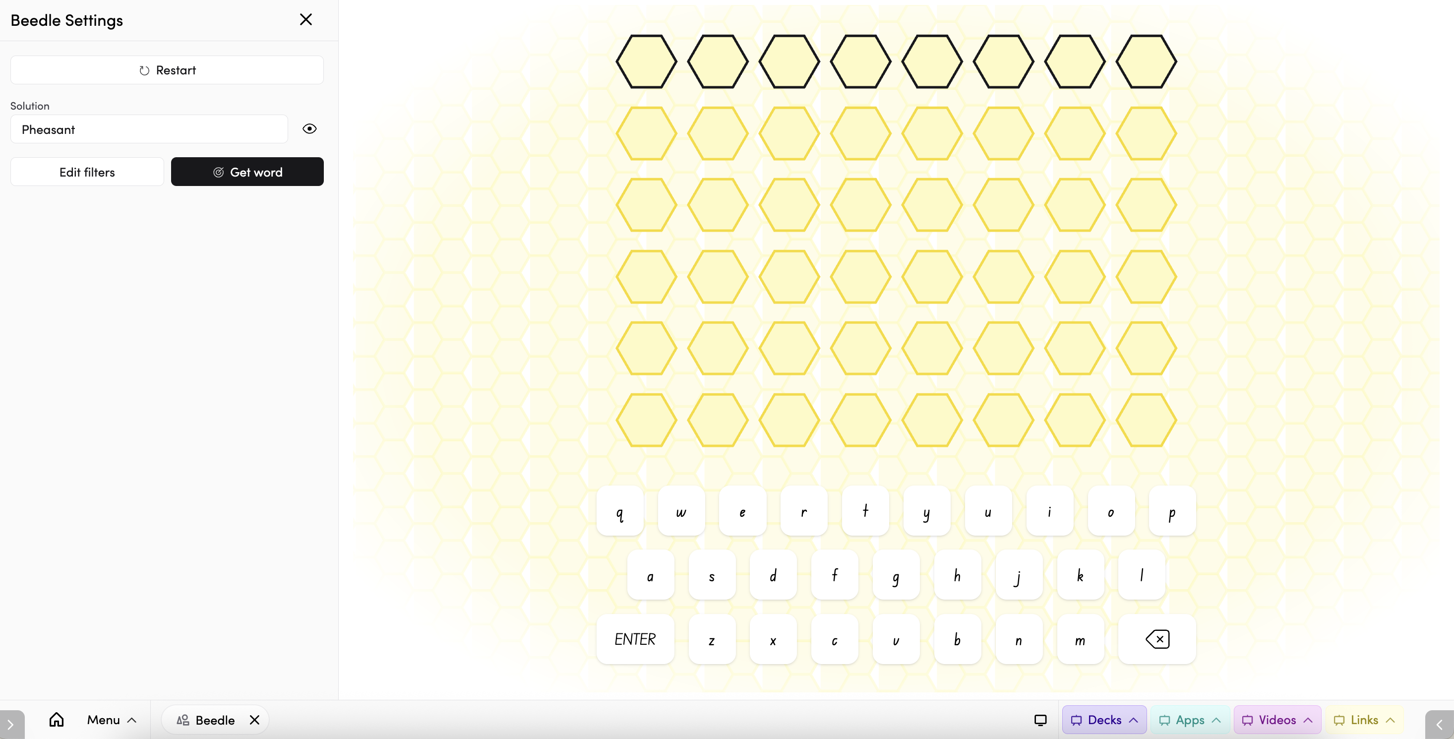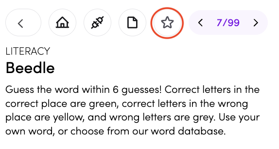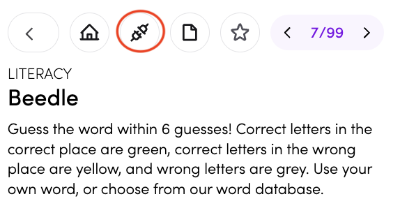 Beedle is a word-guessing game inspired by Wordle. Students have 6 attempts to guess the hidden word — great for phonics practice, spelling, and vocabulary in a fun, game-based format.