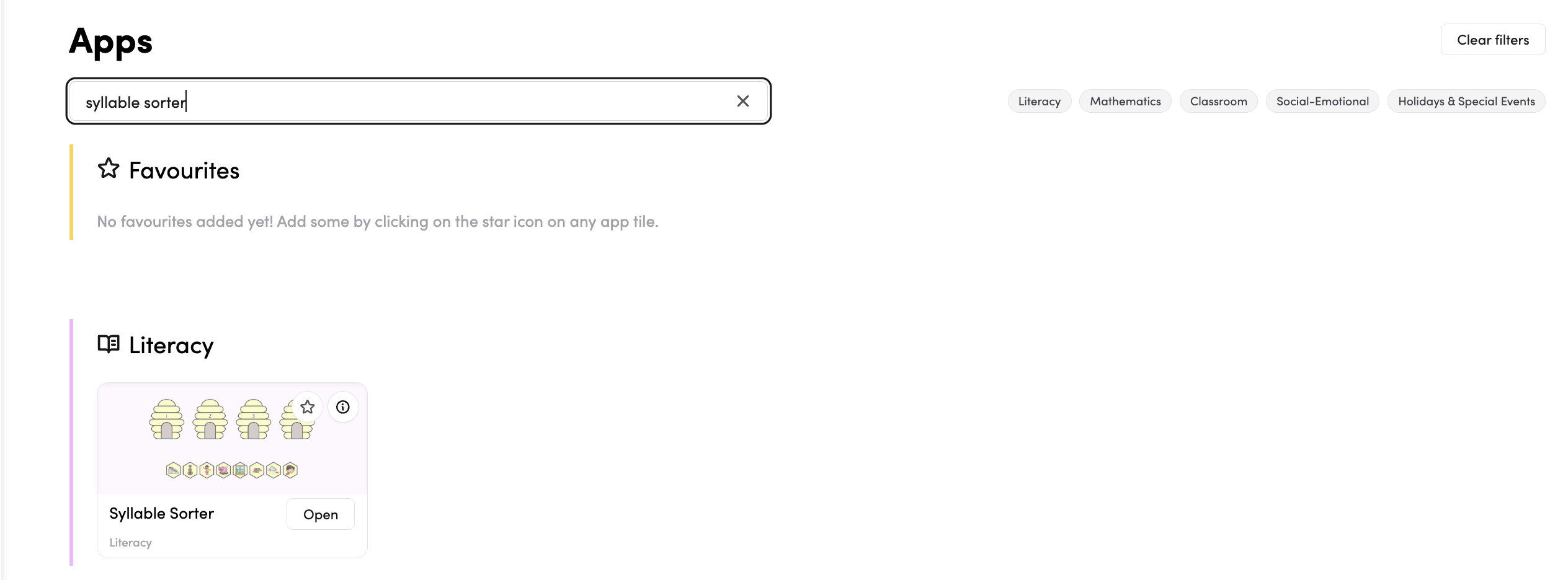 - Search or find the app tile in the list. Click on Syllable Sorter.