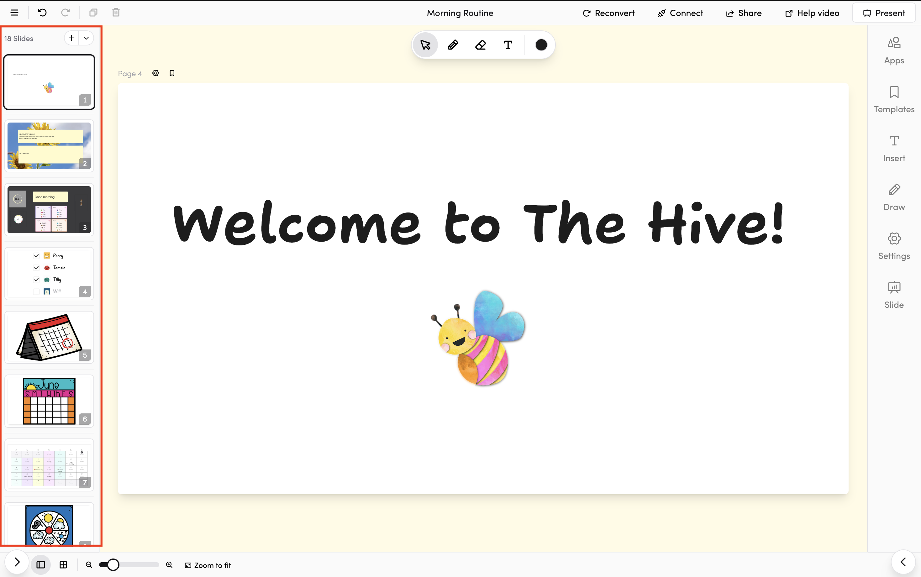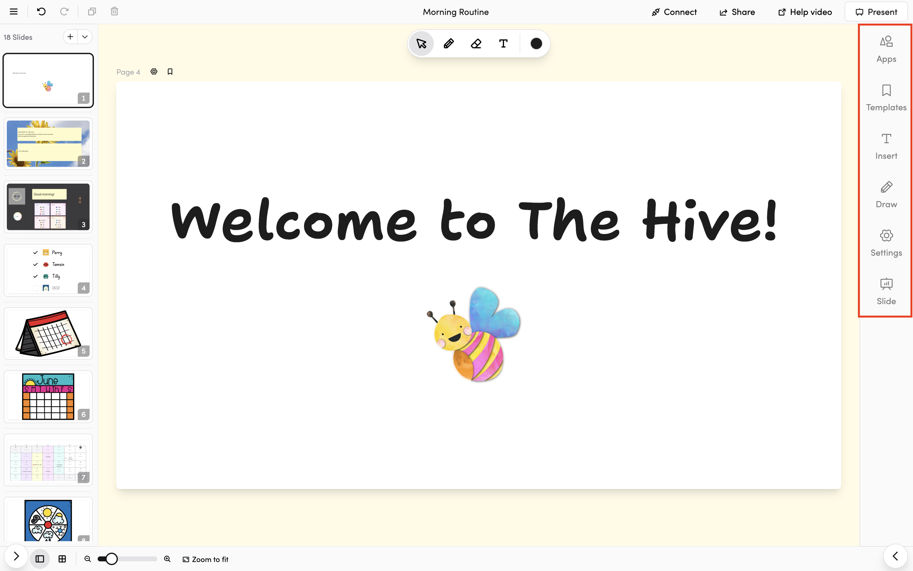 - Explore the sidebar tabs: Each tab (Apps, Templates, Insert, Draw) opens up a different set of tools — take a moment to browse them all