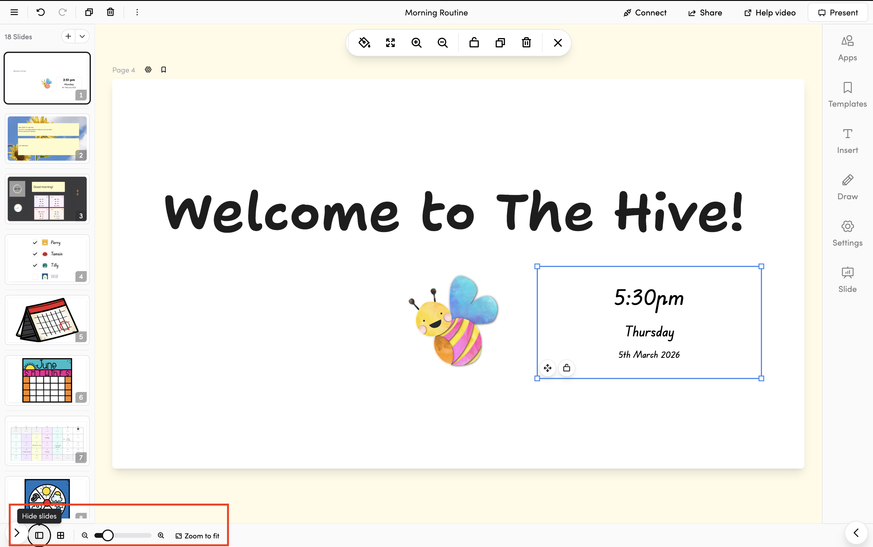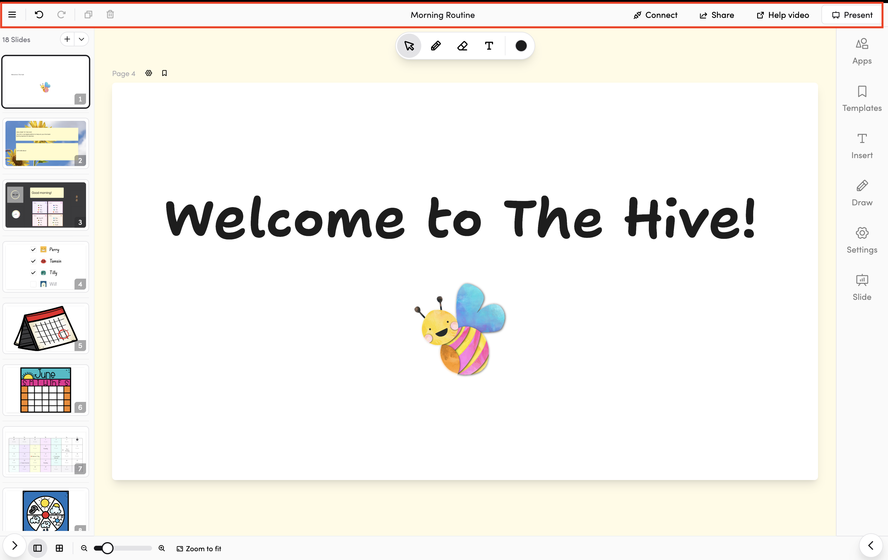 The new slides editor is a powerful, canvas-based presentation tool that lets you create beautiful, interactive slide decks for your classroom. Whether you're building a lesson from scratch or using a template, the editor gives you full control over text, images, videos, apps, drawing tools, and more.