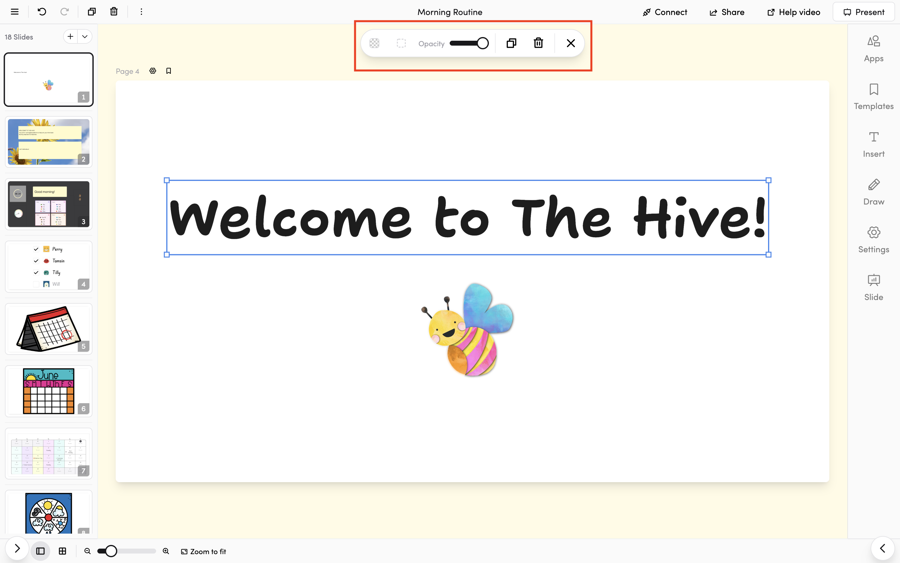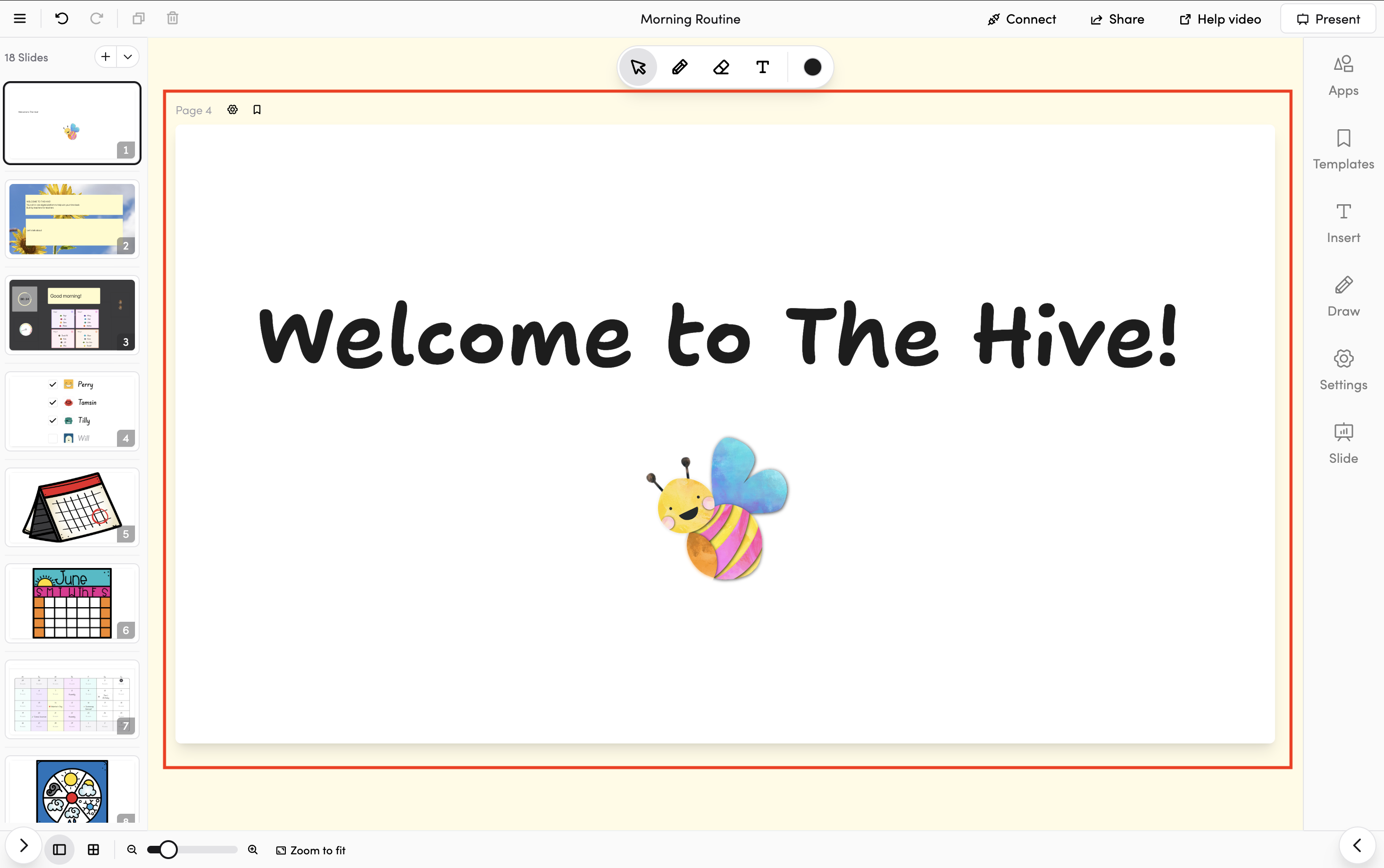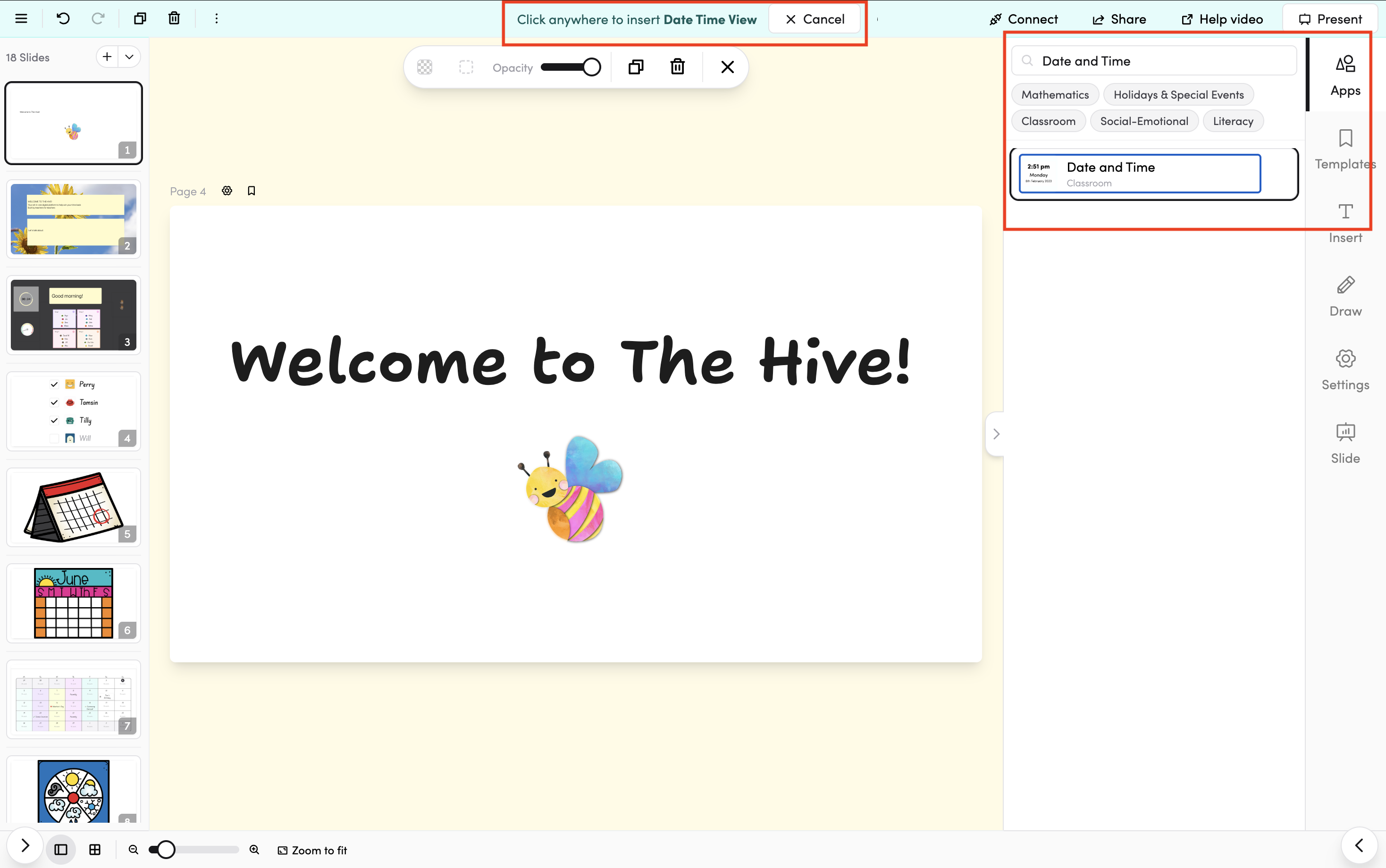 - Use the Apps tab to add interactive learning tools, or the Draw tab to add shapes