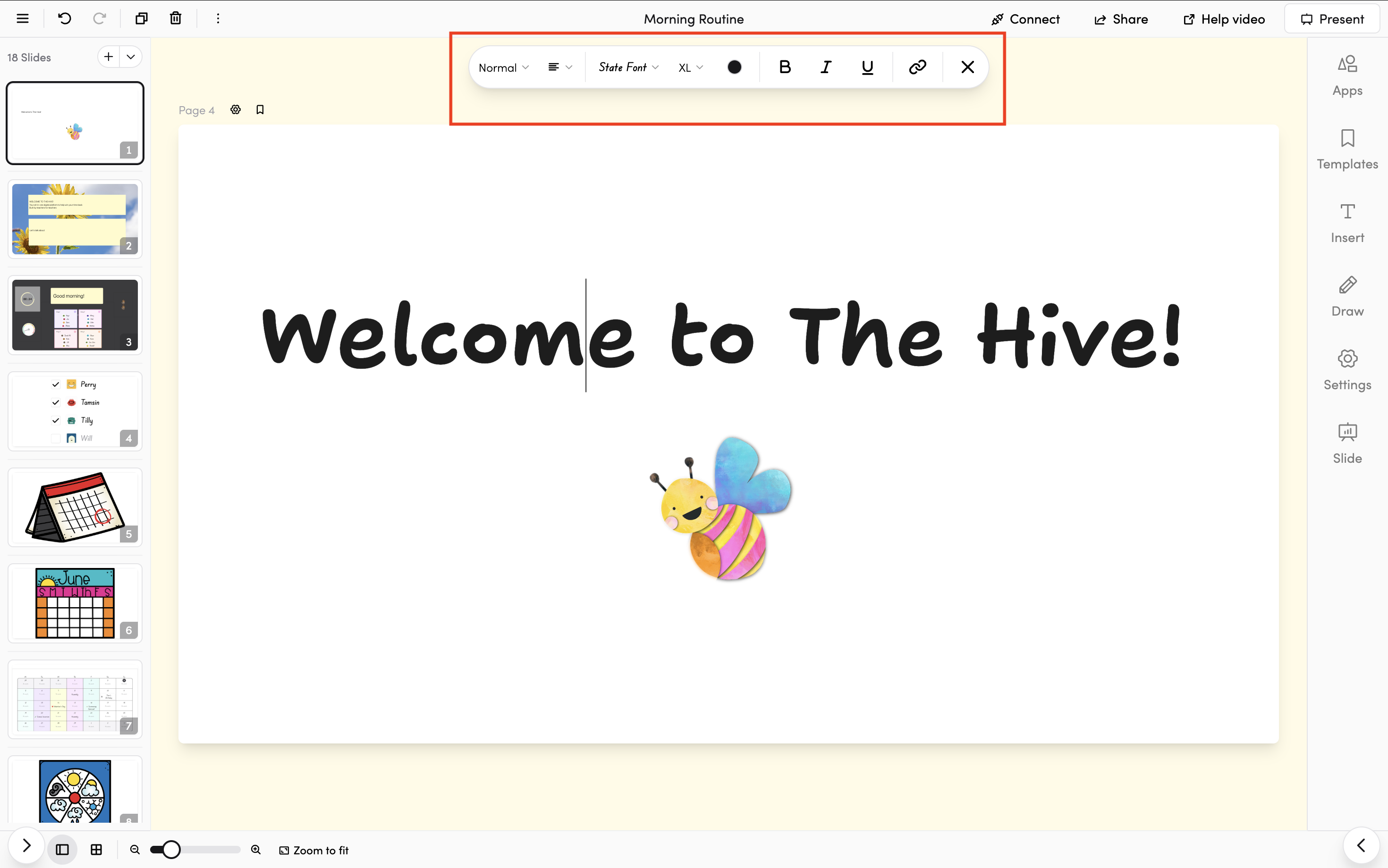 If you're coming from the old slides editor, you'll find the new editor is a big step up — with a more intuitive layout, richer formatting options, and every app available to embed directly into your slides.