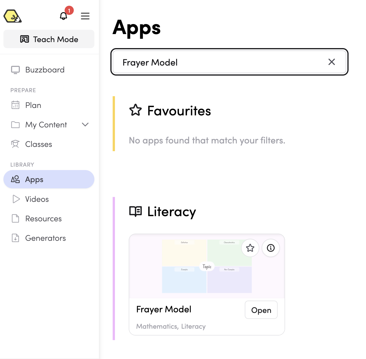 - From the Apps library — browse or search for Frayer Model in the Apps library.