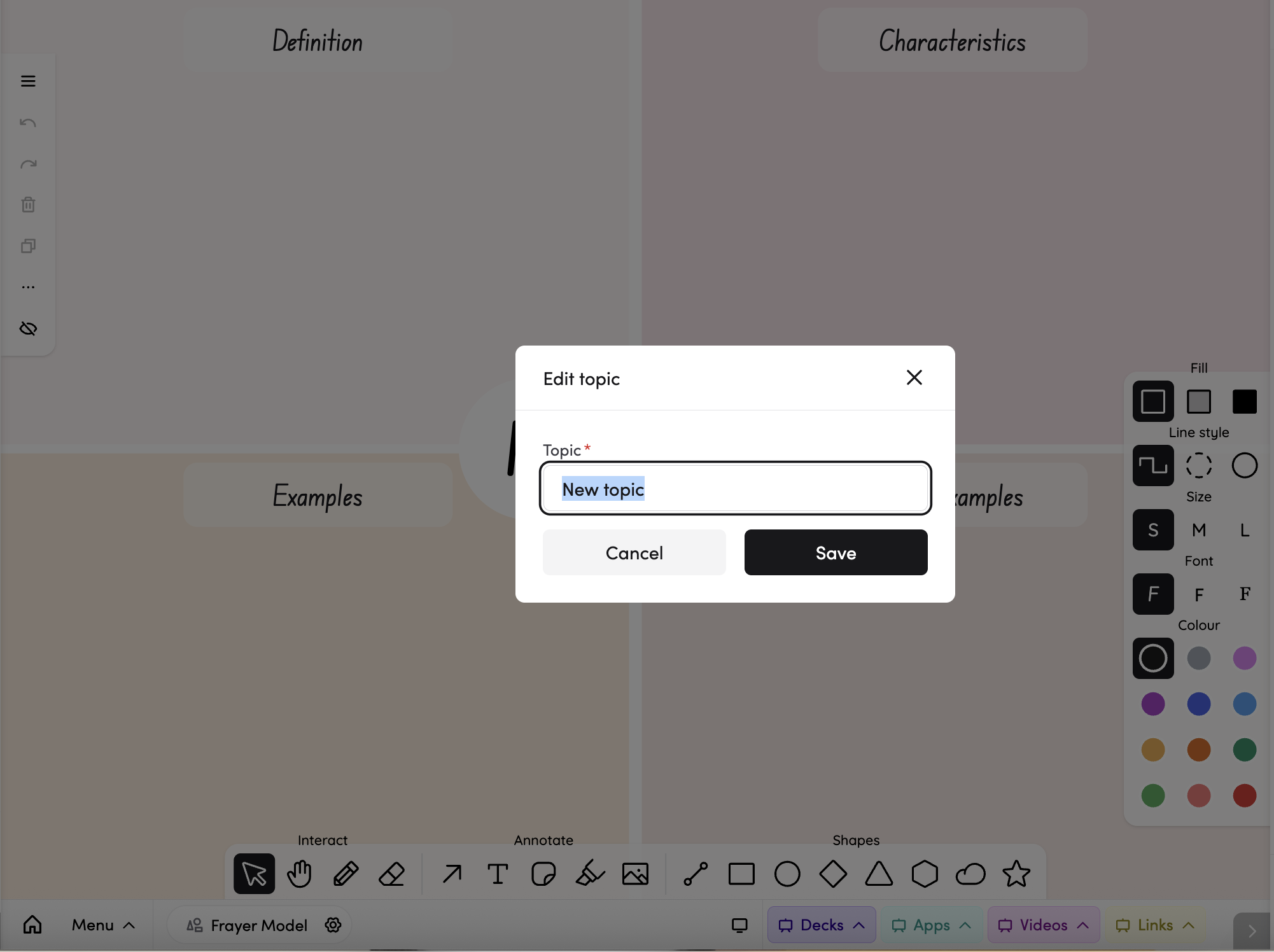 The Frayer Model is a digital graphic organiser that lets you build, customise, and annotate four-quadrant templates with your class. It's perfect for vocabulary lessons, maths concepts, and any topic where students need to explore definitions, characteristics, examples, and non-examples.