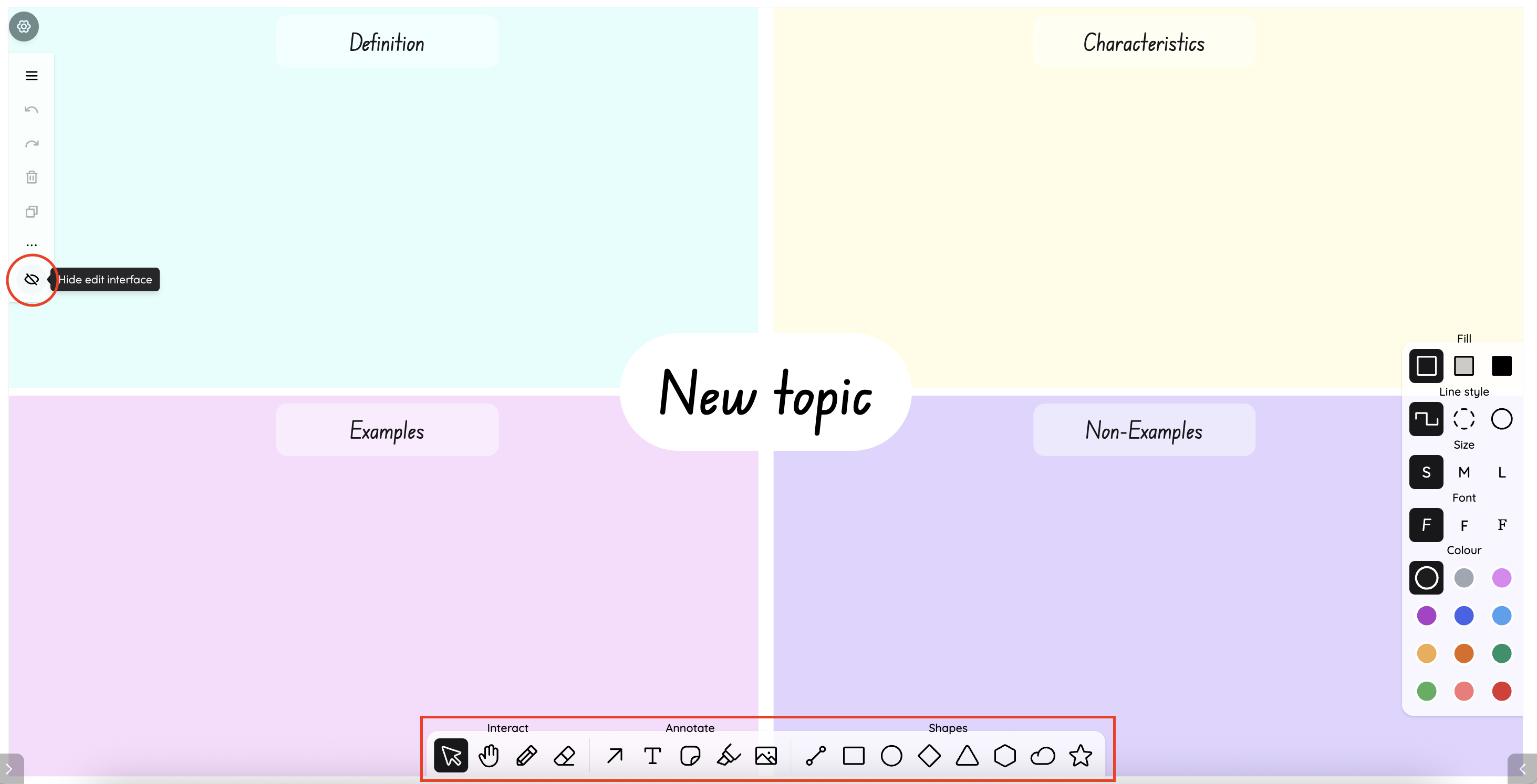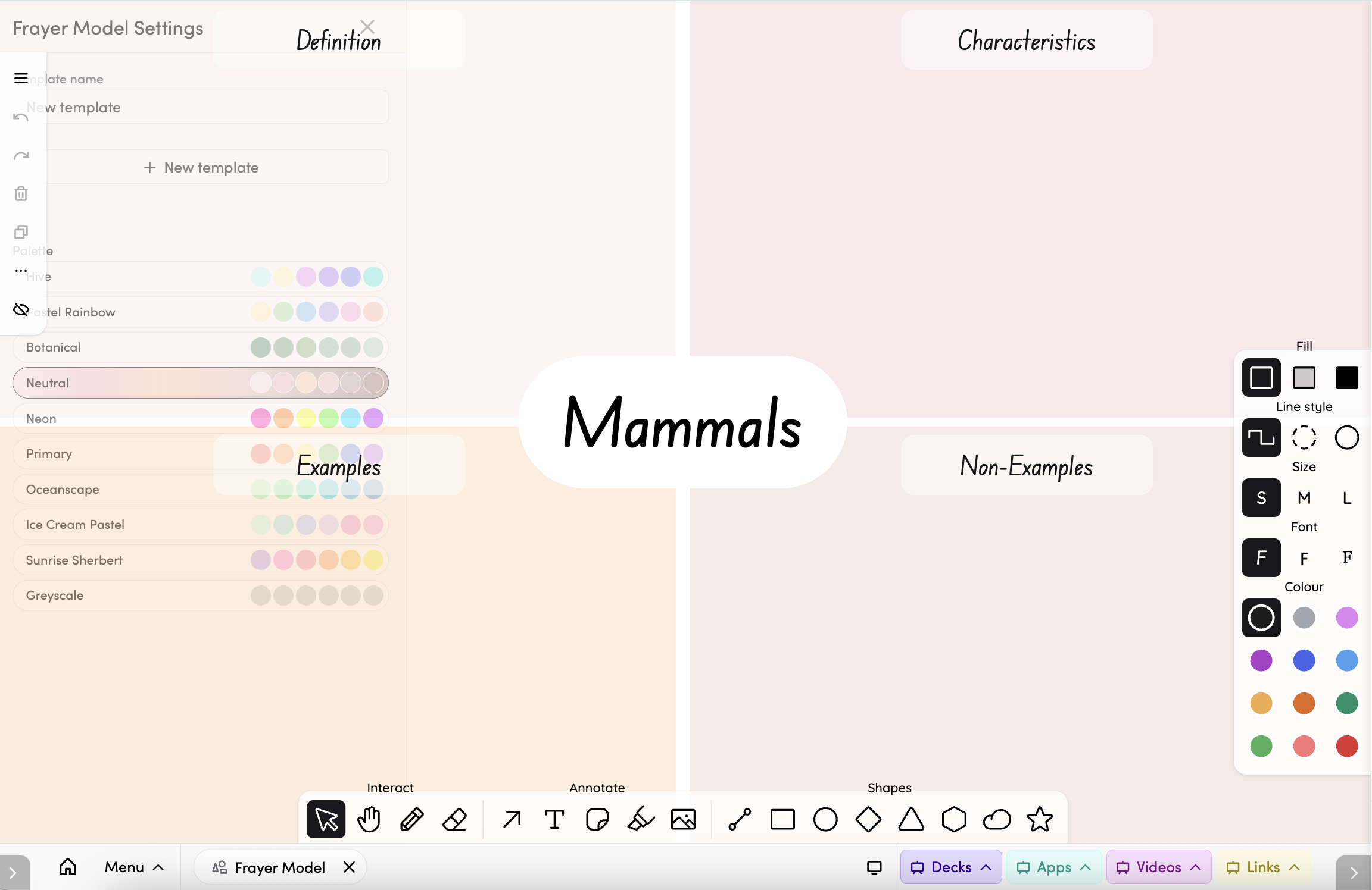 Choose a colour palette from the left panel to change the look of your Frayer Model.