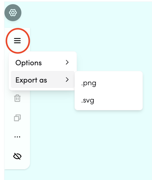 To save or share your Frayer Model, tap the ≡ menu icon and select Export as. Choose your preferred file format from the options available.