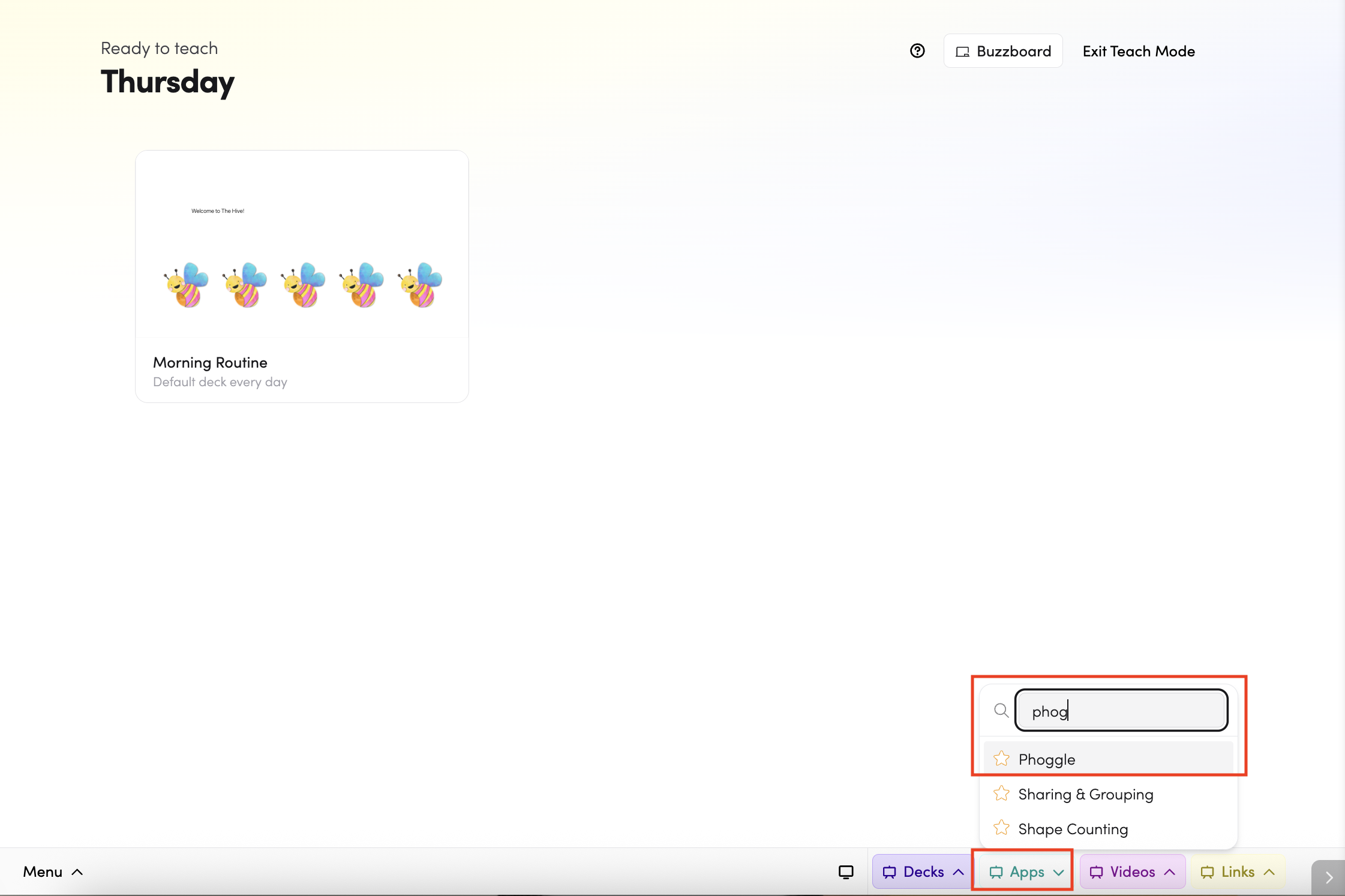 - Through Teach Mode — open Phoggle directly from the bottom bar of Teach Mode.