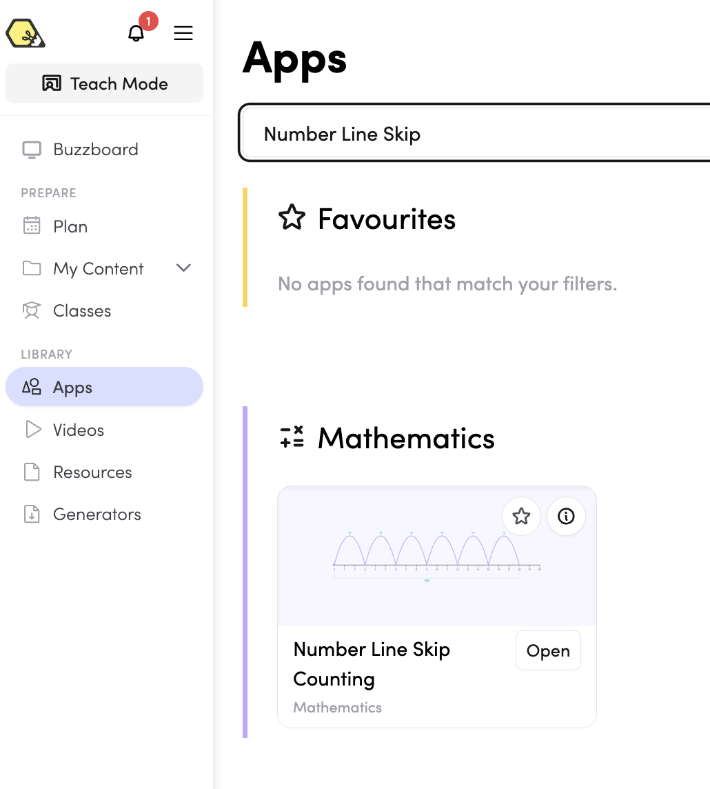 - You can add Number Line Skip Counting to your favourite apps via the Teach Mode or through the App library. Click on this icon if you're adding it through the App library.