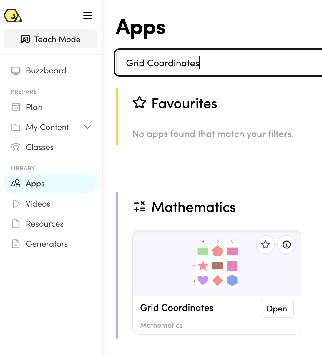 - You can connect Grid Coordinates to specific subjects in your timetable (read more about timetable connections here). If you're connecting it through the App library, click this icon.
