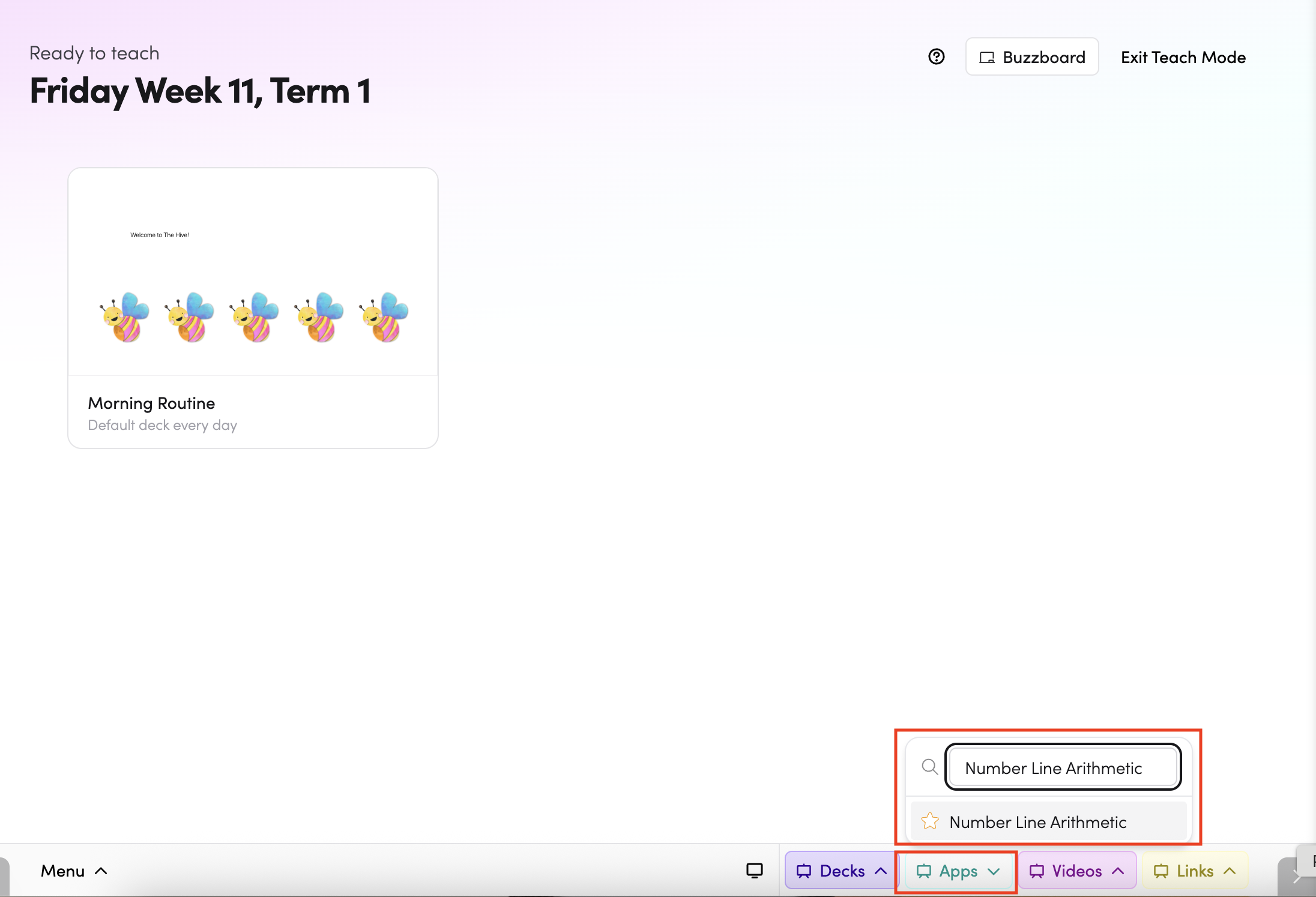 - Through Teach Mode — open Number Line Arithmetic directly from the bottom bar of Teach Mode.