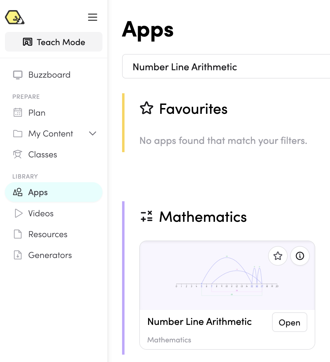 - You can add Number Line Arithmetic to your favourite apps via the Teach Mode or through the App library. Click on this icon if you're adding it through the App library.