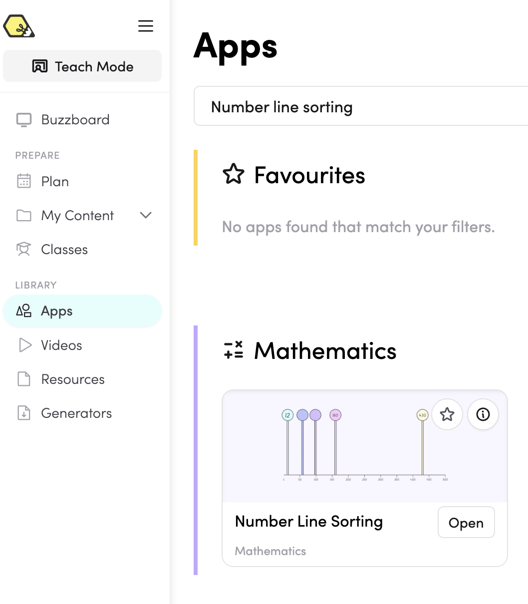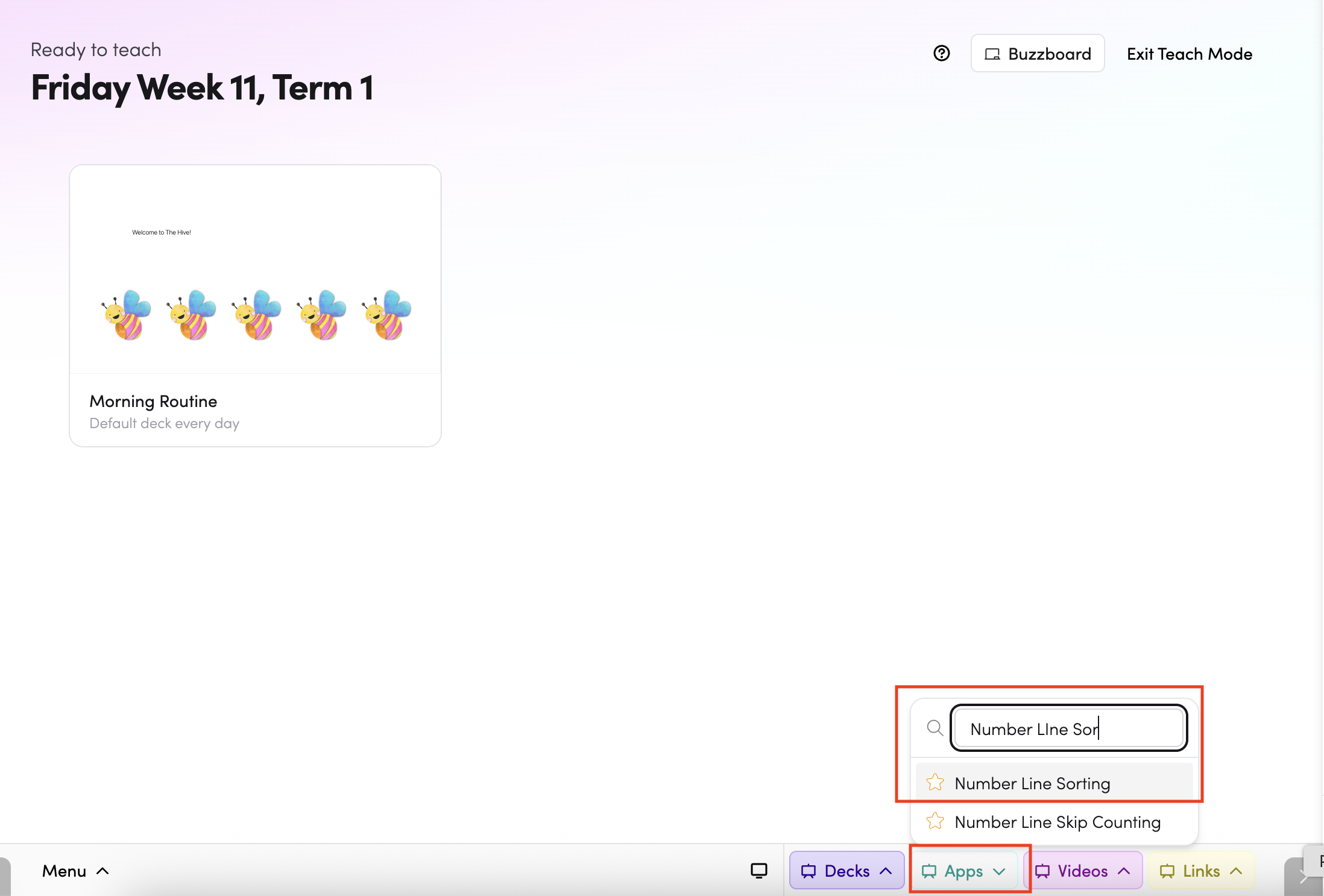 - You can add Number Line Sorting to your favourite apps via the Teach Mode or through the App library. Click on this icon if you're adding it through the App library.