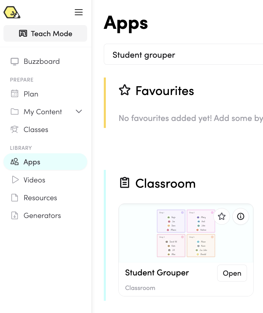 - You can add Student Grouper to your favourite apps via the Teach Mode or through the App library. Click on this icon if you're adding it through the App library.