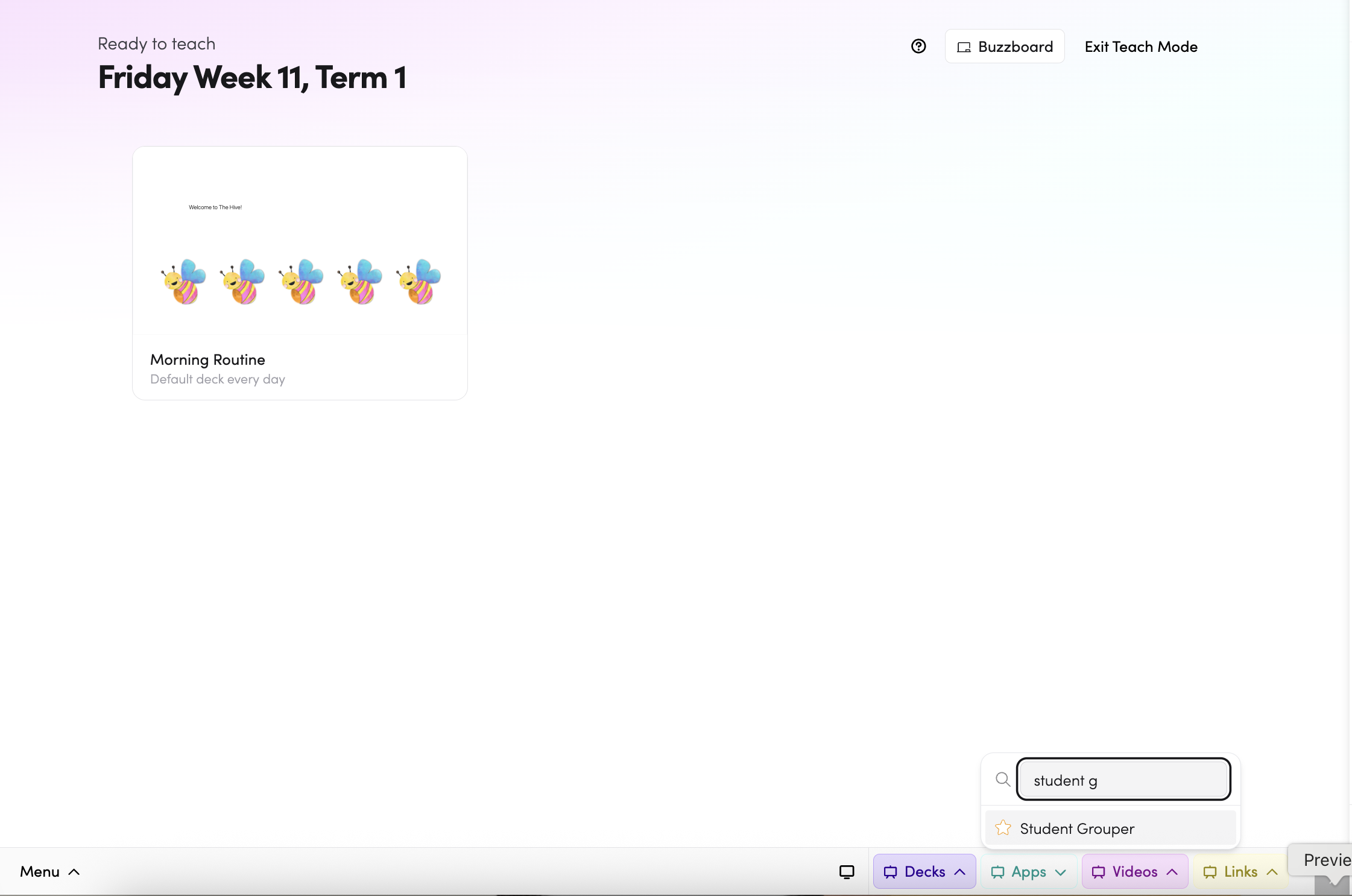 - Through Teach Mode — open Student Grouper directly from the bottom bar of Teach Mode.