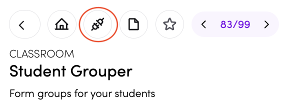 - You can connect Student Grouper to specific subjects in your timetable (read more about timetable connections here). If you're connecting it through the App library, click this icon.