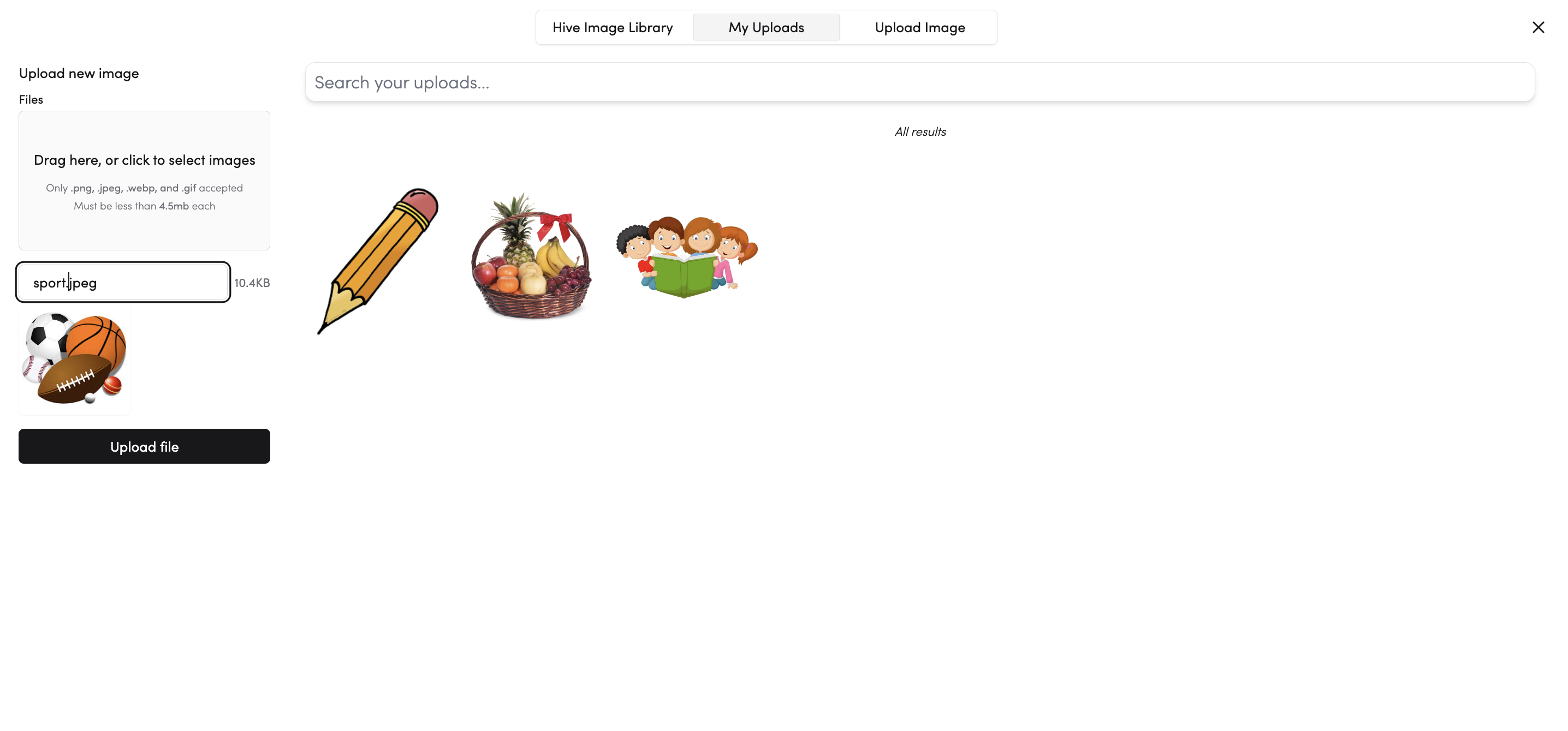 - To change the image, you can use the Hive image library by searching for the image you want to use.