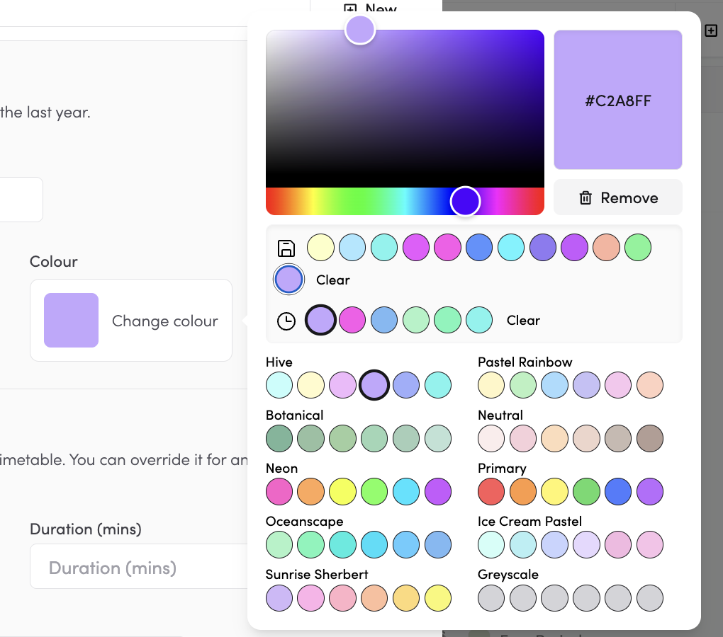 - To change the colour of the option, simply click on 'Change Colour'. A colour palette will appear.