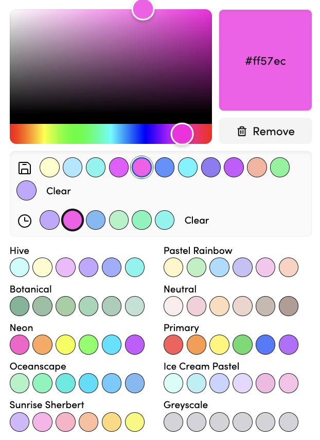 - You can choose from the available colour palettes or drag the slider to select the exact colour you want.